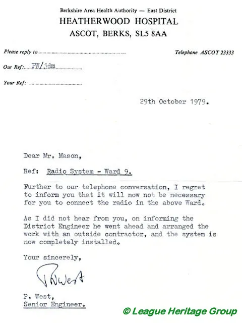Radio Heatherwood of Heatherwood Hospital. Ascot," has put out