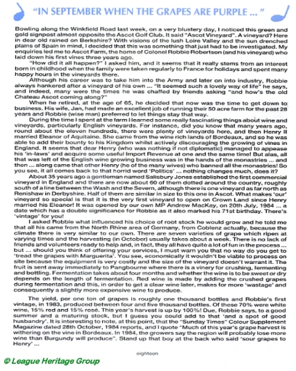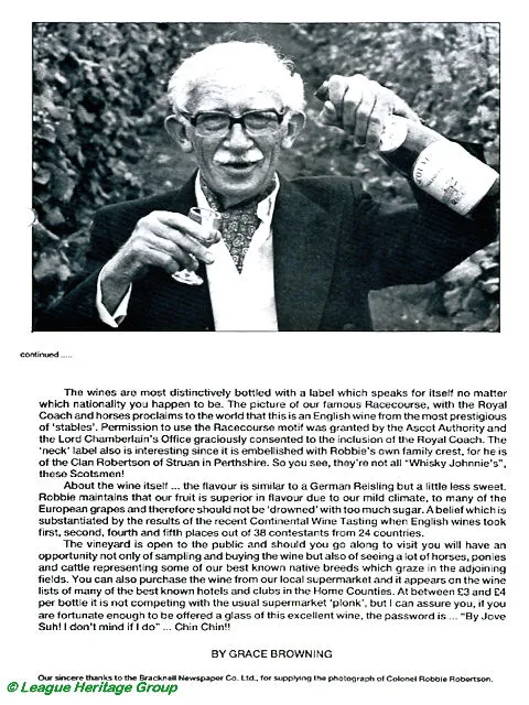 The booklet also carried an article by Grace Browning on local wine grower Colonel Robbie Robertson.