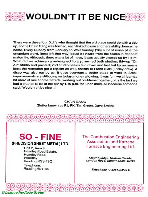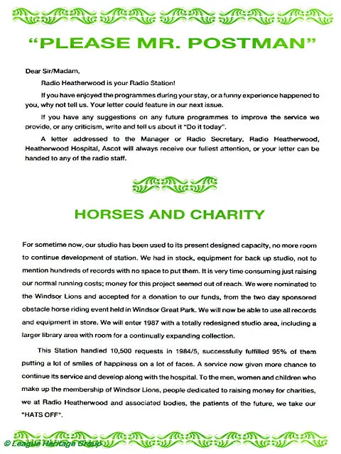 It also informed readers how they can help the radio, it carried a thank you to the Windsor lions and details of the half marathon and gas board raffle.