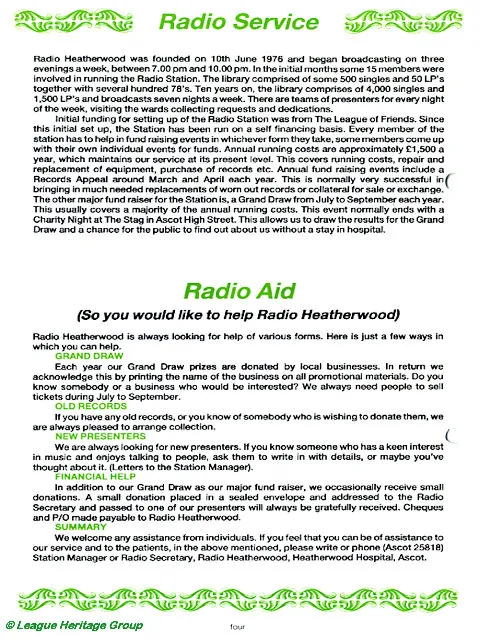 The Patient Booklets were given freely to patients to promote the work of the radio station and the leagues trolley shop.