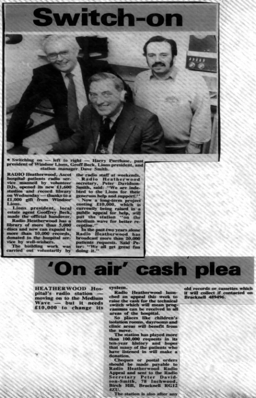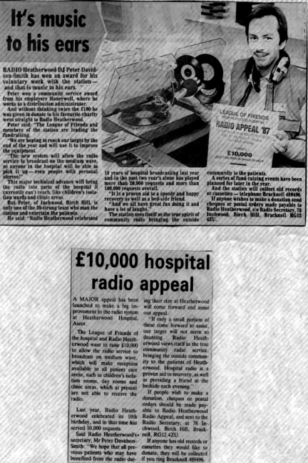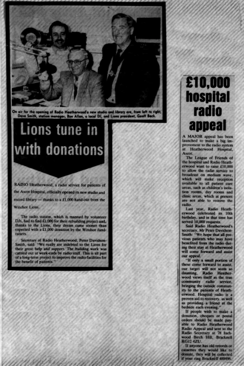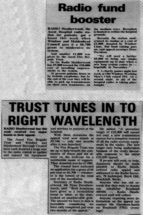 Bracknell times article printed. This article was organized by Honeywell as one of their staff involvement in the community. A cheque of £100 was given to the station and the secretary had lunch at South Hill park. |