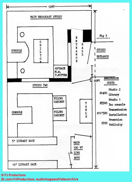 The major building work was completed on the 31st of January: painting and wiring commenced immediately. The majority of work was carried out by the engineer three nights a week, all day Saturdays and Sunday mornings. The manager with assistance from a couple of presenters added the finish to the studio, with a spot of paint.