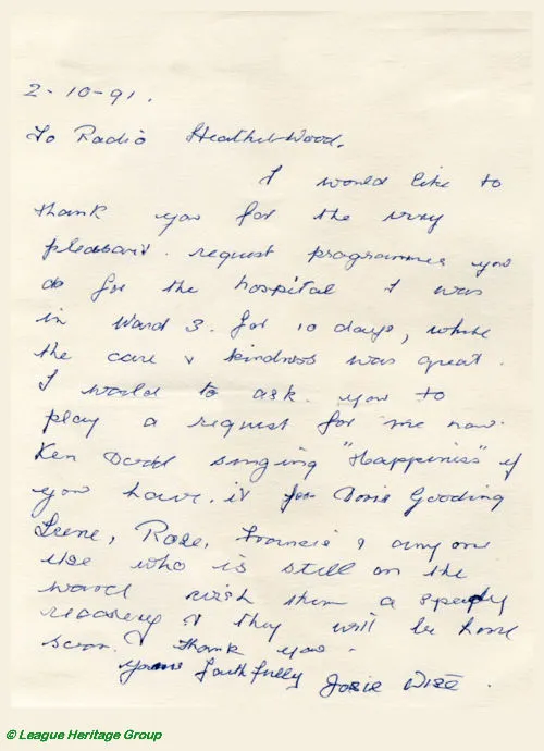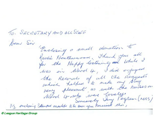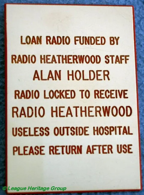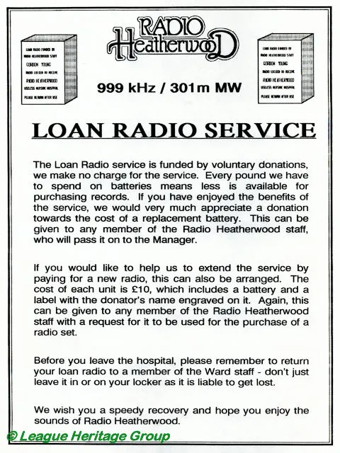 The loan radio service was an integral part of our listening audience and as the old bed head stethoscope system declined further, the league and radio service decided to provide loan radio's.