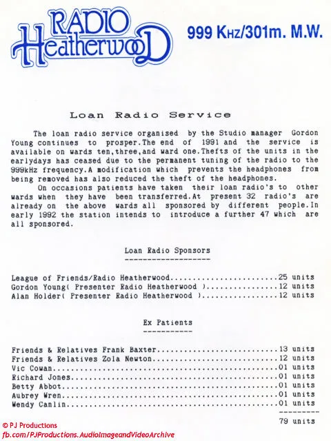 Former patients and family and friends were coming forward to sponsor radio's in memory of loved ones. Each radio would carry a plaque showing who had provided the radio.