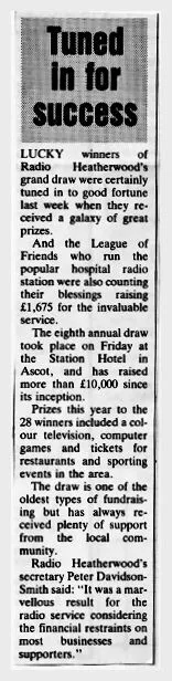 £220 of which Radio Heatherwood received £50. The Ascot News ran an