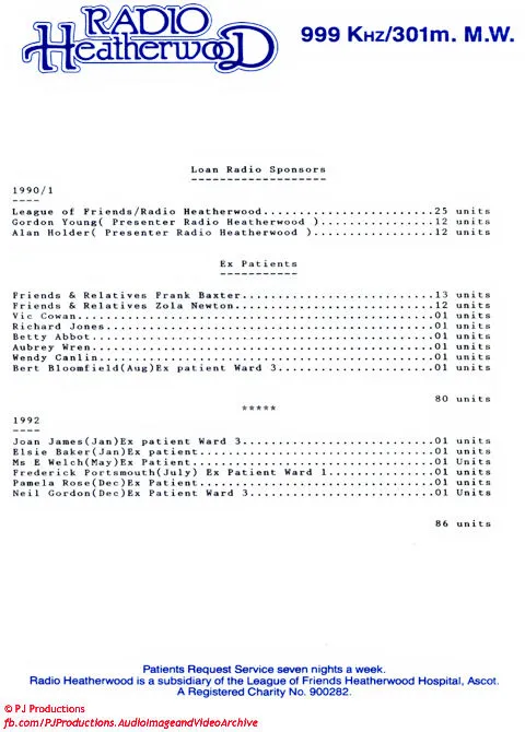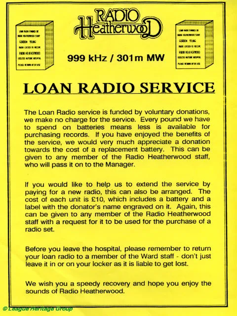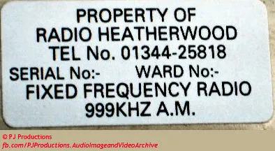 and were fixed to Radio Heatherwood's frequency of 999kHz AM.