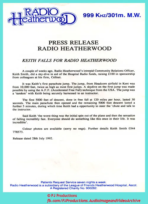 1992 was one of those years which was packed full of events and deeds which generated a lot of interest in the radio. Radio Heatherwood was out in the community publicised it's services.