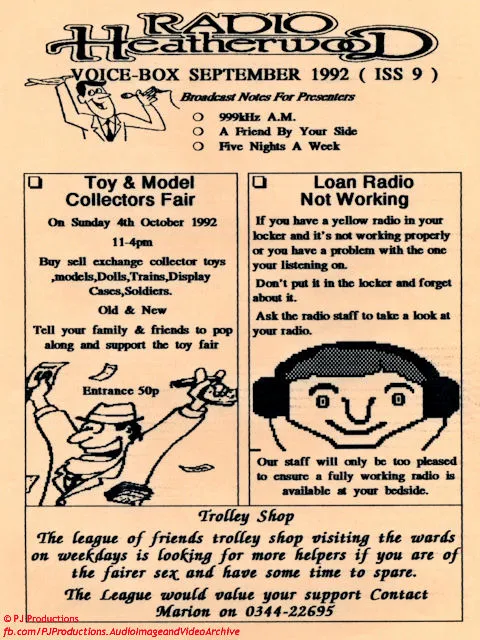 This edition carried promotions for loan radio problems, trolley shop, toy model & fair, new presenters and loan radio batteries, and promotion of the medium wave service.