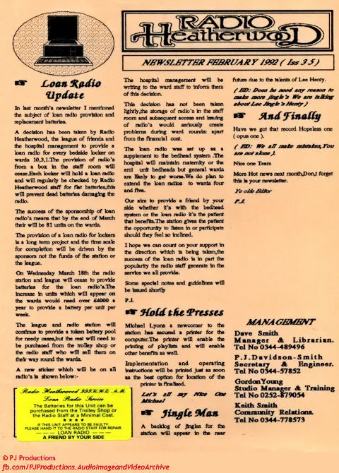 1992 started with the remaining staff under a great deal of pressure to maintain the service in the aftermath of the previous September 1991.The continued support of presenters; provided a tremendous boost to the management.