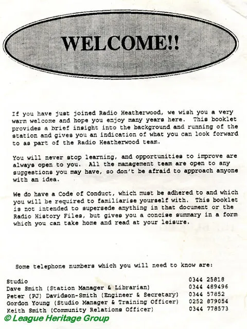 The following booklet was compiled by Gordon Young as part of a welcome package which would be issued to volunteers.