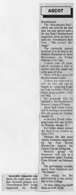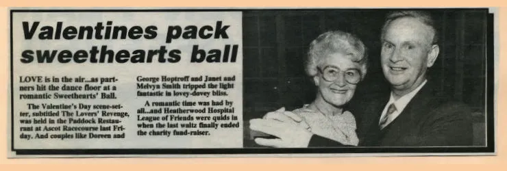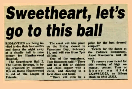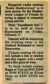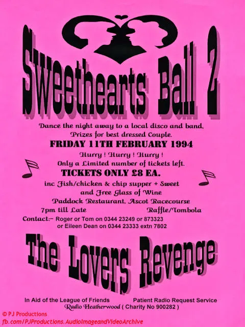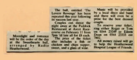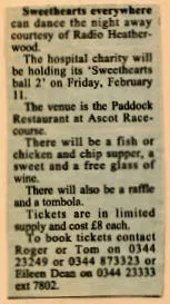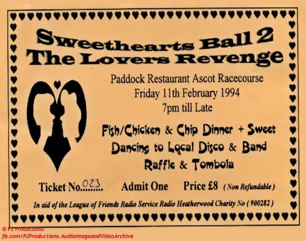 The event staged on Friday 11th February 1994 at the racecourse was attended by over 200 people. Live music, disco, a fish & chicken supper and wine all provided an evening of dancing and romance.