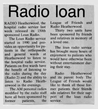 a lot of interest in the radio. Radio Heatherwood was out in the