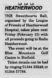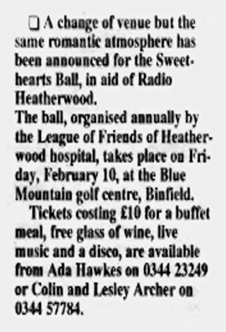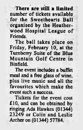 The event staged on Friday 10th February 1995 at the Turnberry suite, Blue Mountain Golf Club, tickets were £10 each which included a buffet meal with sweet and free glass of wine.
