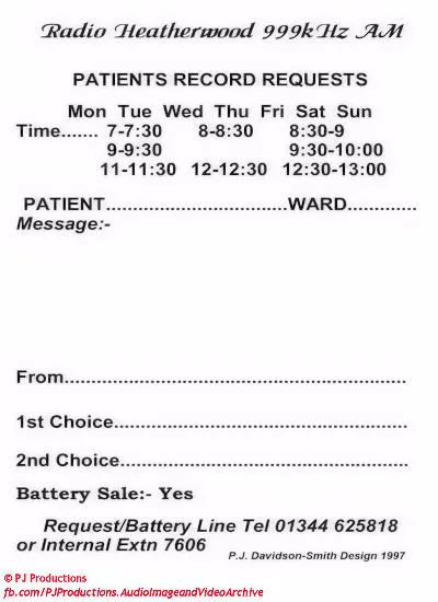 Hospital Radio Heatherwood Promotion 1997