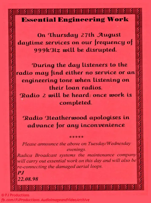 A look back at 1998 at Radio Heatherwood and all the events of the year.