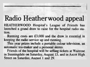 Heatherwood Hospital in Ascot's radio service for patients.