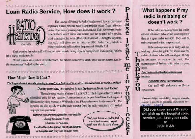 On the inside it detailed how the loan radio service works and also how they could obtain replacement batteries.