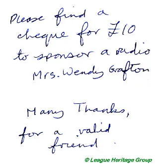 I enclose £10 as I would like to make a donation towards the upkeep of your radio station which is providing such a worthwhile service.