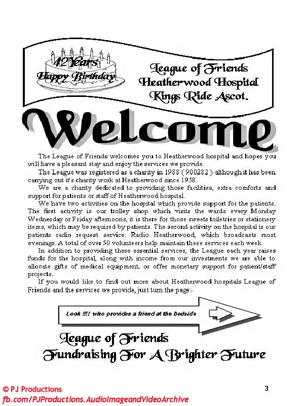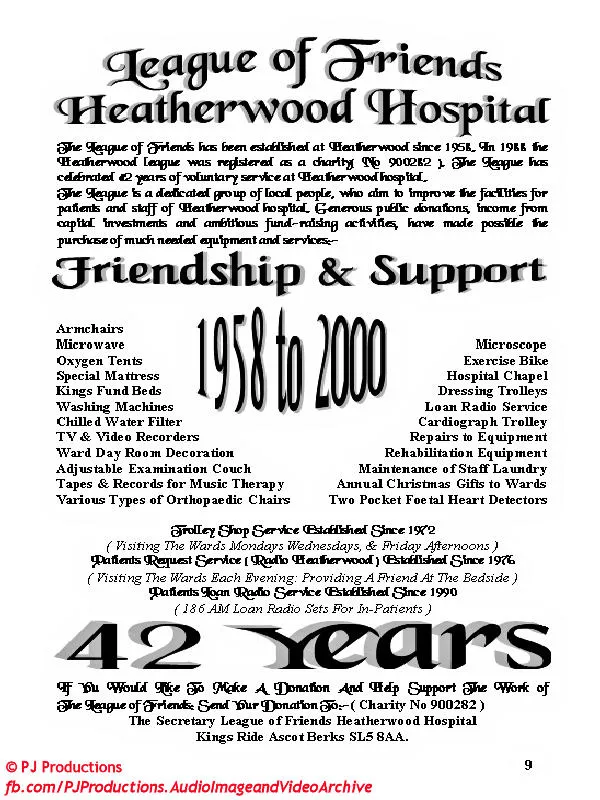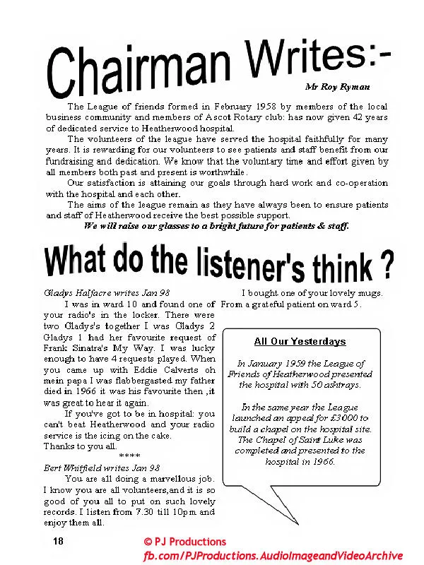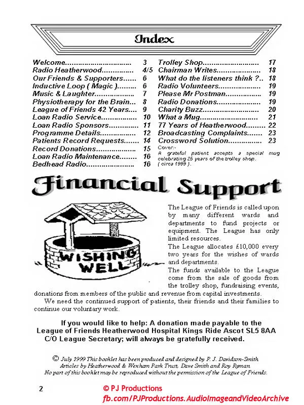 The new look booklet was released in March 1996 with a hard white shiny cover contained 24 pages of information on all of the services of the league of friends and some physiotherapy for the brain. The booklet was printed by M Weller printing from Ascot.