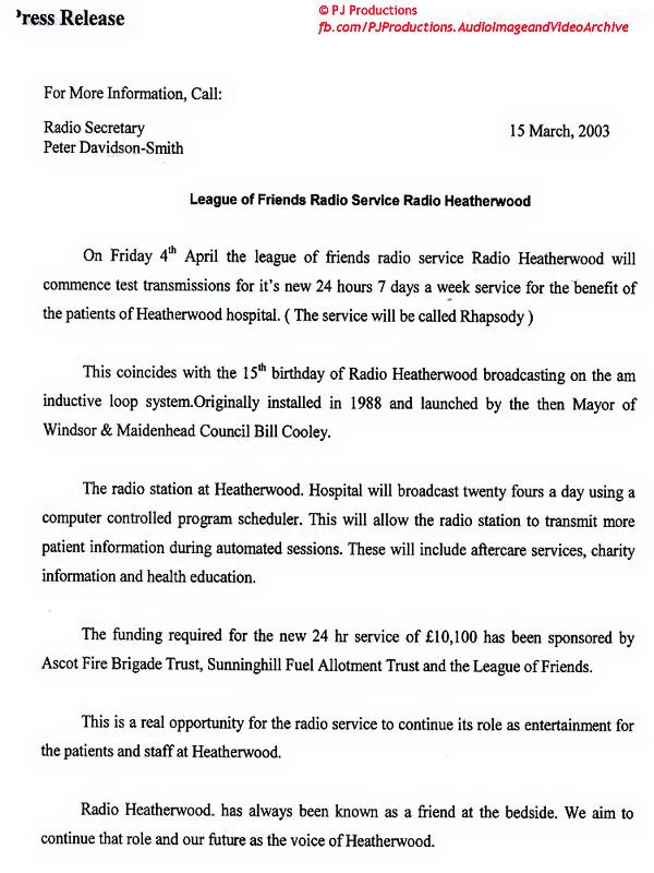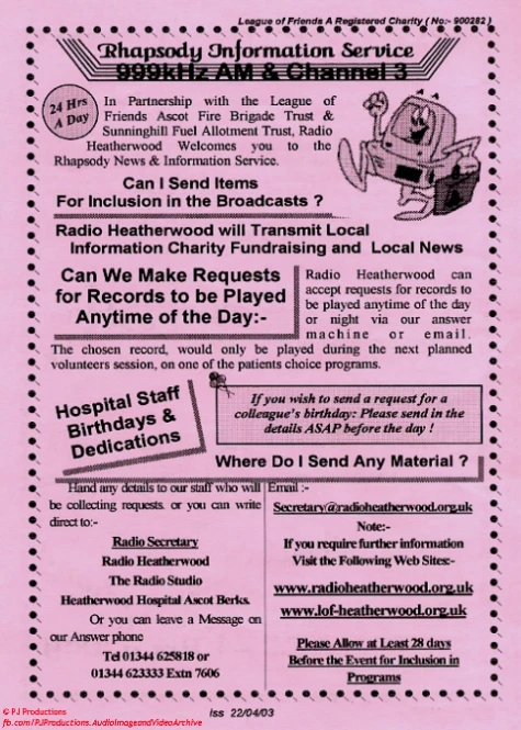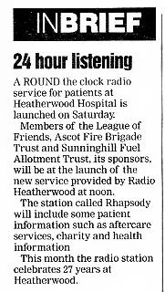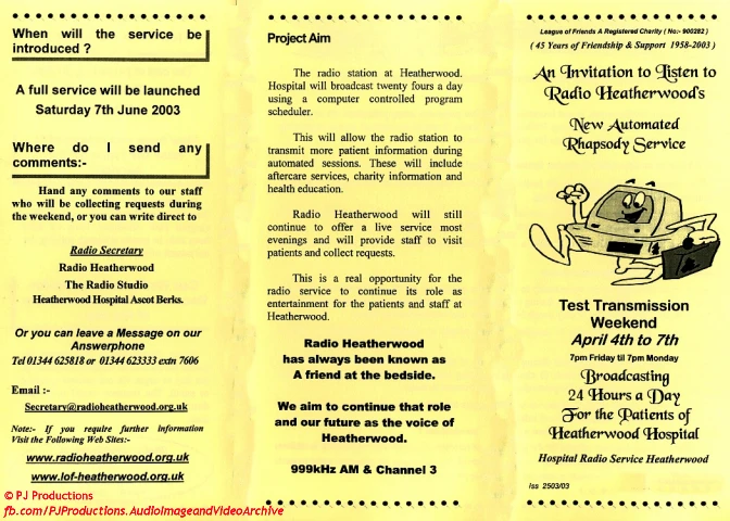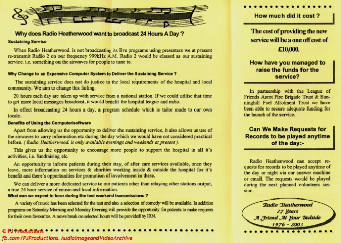 The first time we looked at introducing the service was when articles appeared in the national association magazine in 1998 with an article by Radio Hillingdon. It was also the investigations into Low Power AM which made us aware that we would have to supply a sustaining service other than re transmitting radio 2.