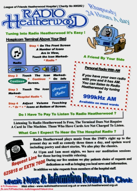 Picture this scenario:- We go onto the wards meet our first patient who says yes I’d like a record played on the radio. You do your sales pitch and you say we’ll play that between 8-8.30. the patient asks how do I listen in ? And you say “ I’m not allowed to show you but it’s on that terminal above your head!!!”.