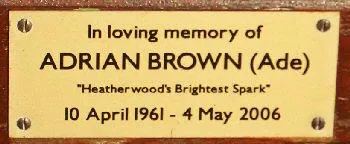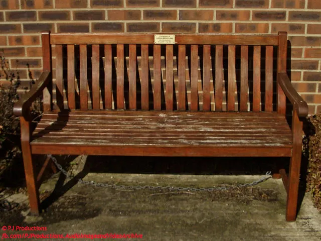 character, a bench seat dedicated to “Ade” sits