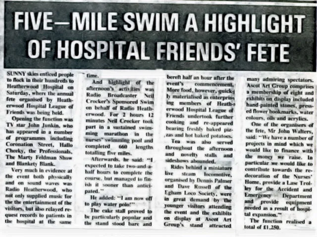 A presenter at Radio Heatherwood Neil Crocker swam the nurses Swimming