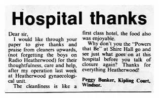 The development of Hospital radio on the FM frequency produces a wave of correspondence to the station. The chance for the station to participate with the development of the Fm broadcasting is turned down by the management,due to an underlying problem with commitment from hospital management and presenters. A sad day for the station and Heatherwood ;and a missed opportunity.